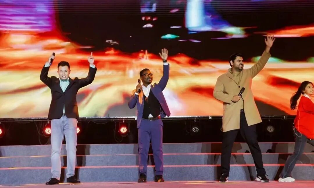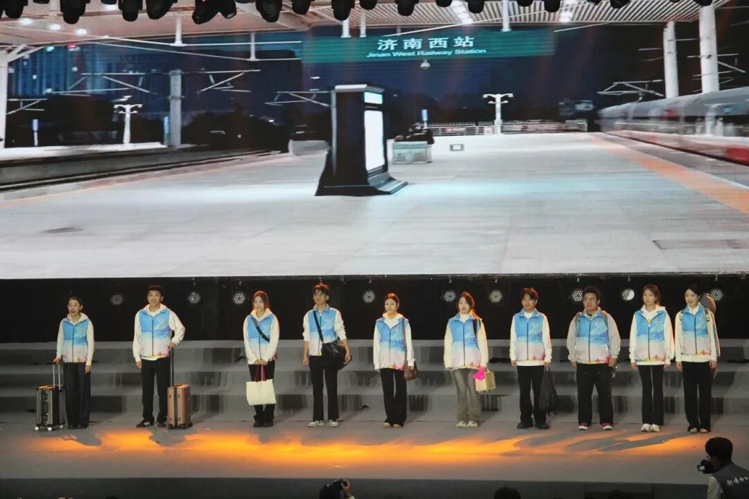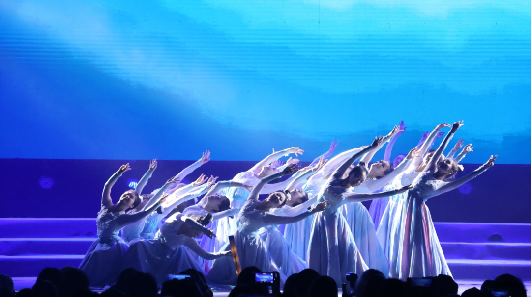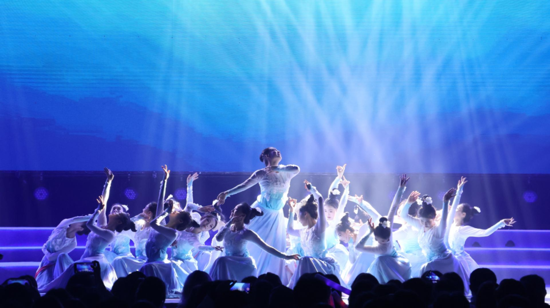 第二篇章以“爱校 青春逐梦”为主题,展示丰富的校园精神文化内涵。学校新生辅导员代表、外籍教师代表、2025年“校园十佳歌手”代表、学校社团ST街舞社轮番登台献唱《再次重逢的世界》《女孩》《爱》《相亲相爱》,展示了丰富的校园文化生活;由山东省青年政治学院舞蹈学院带来的群舞《蘭叙》,鼓励同学们逆向而生,无惧风雨;我校霍伟义老师及其团队精心打造的原创小品《庆功酒》,通过一则抗战故事,带领同学们重温那段用生命谱写的壮烈岁月,让同学们在伟大抗战精神中汲取前进力量。