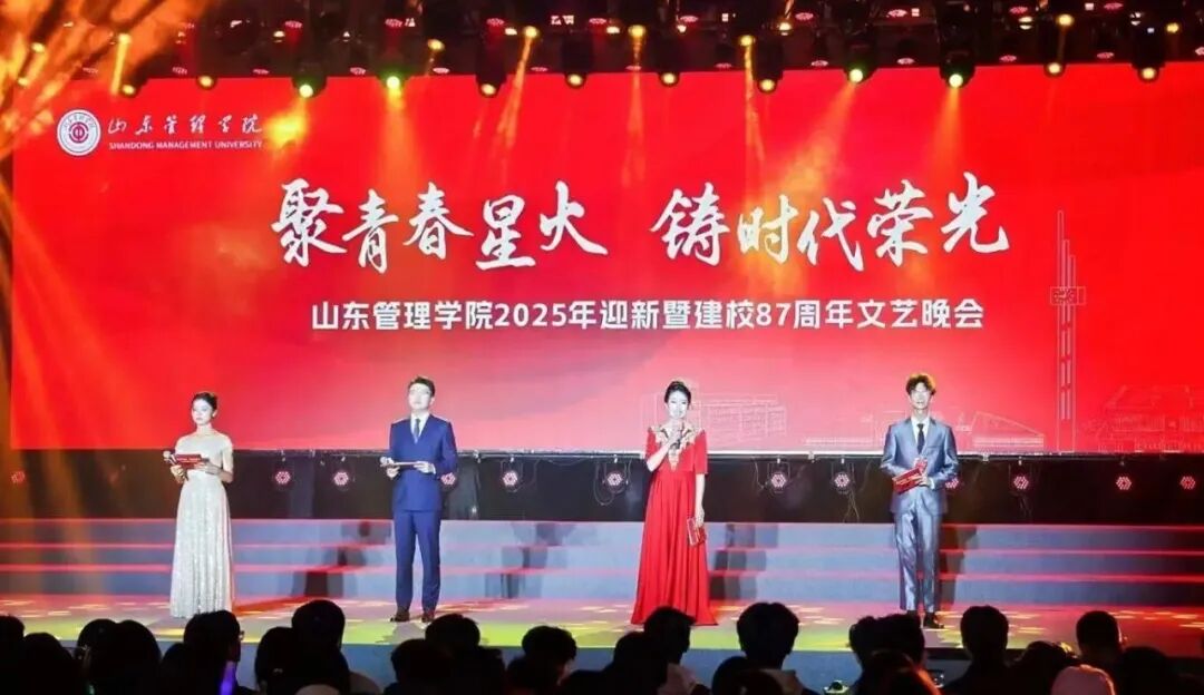 10月28日晚,山东管理学院2025年迎新暨建校87周年文艺晚会在大学生文体中心圆满落幕。学校党委书记魏勇、校长韩作生、党委副书记孙琪、副校长董以涛、副校长王艺,长清区委宣传部分管日常工作的副部长、区文明办主任、新闻出版局局长马雍出席活动。