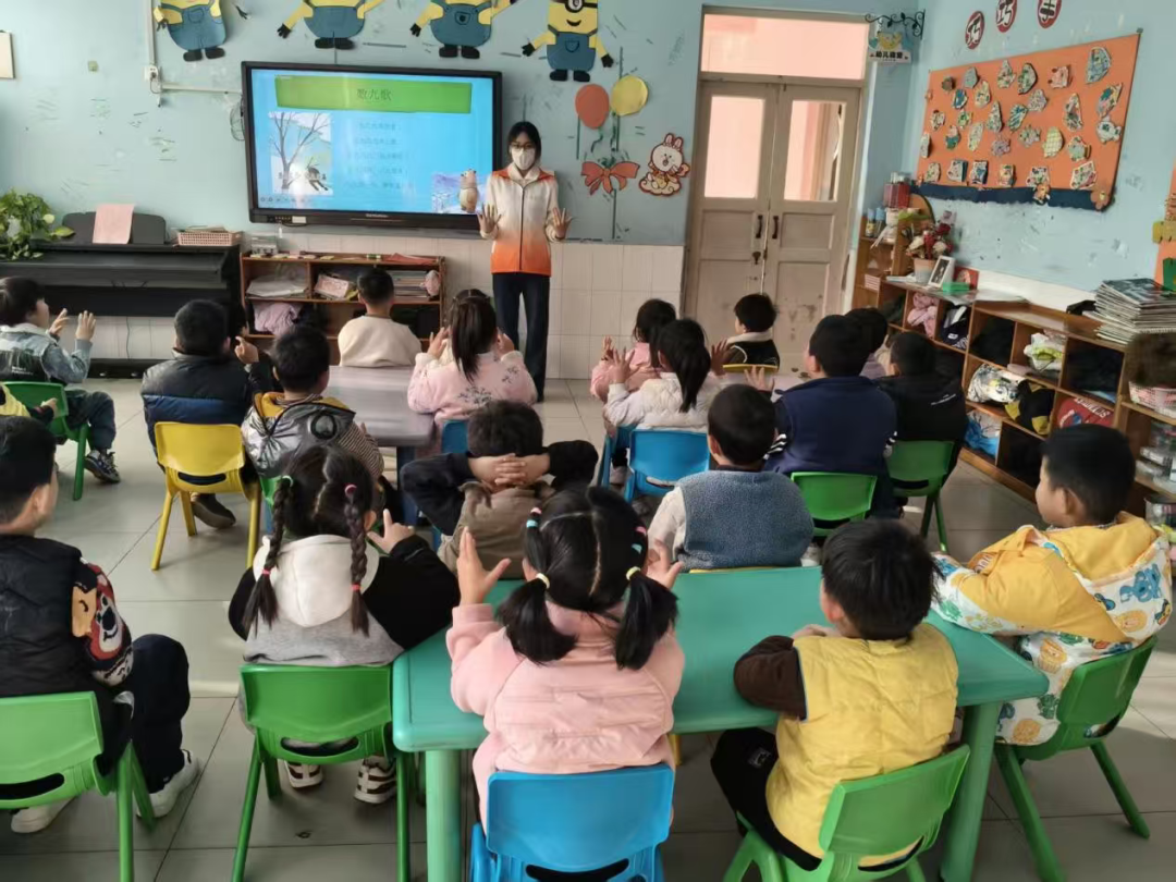 志愿者为孩子们科普冬至的起源与传统习俗,带领大家学习《数九歌》手势舞。明快的旋律搭配活泼的动作,让孩子们在欢声笑语间深切感悟传统节气的文化魅力。