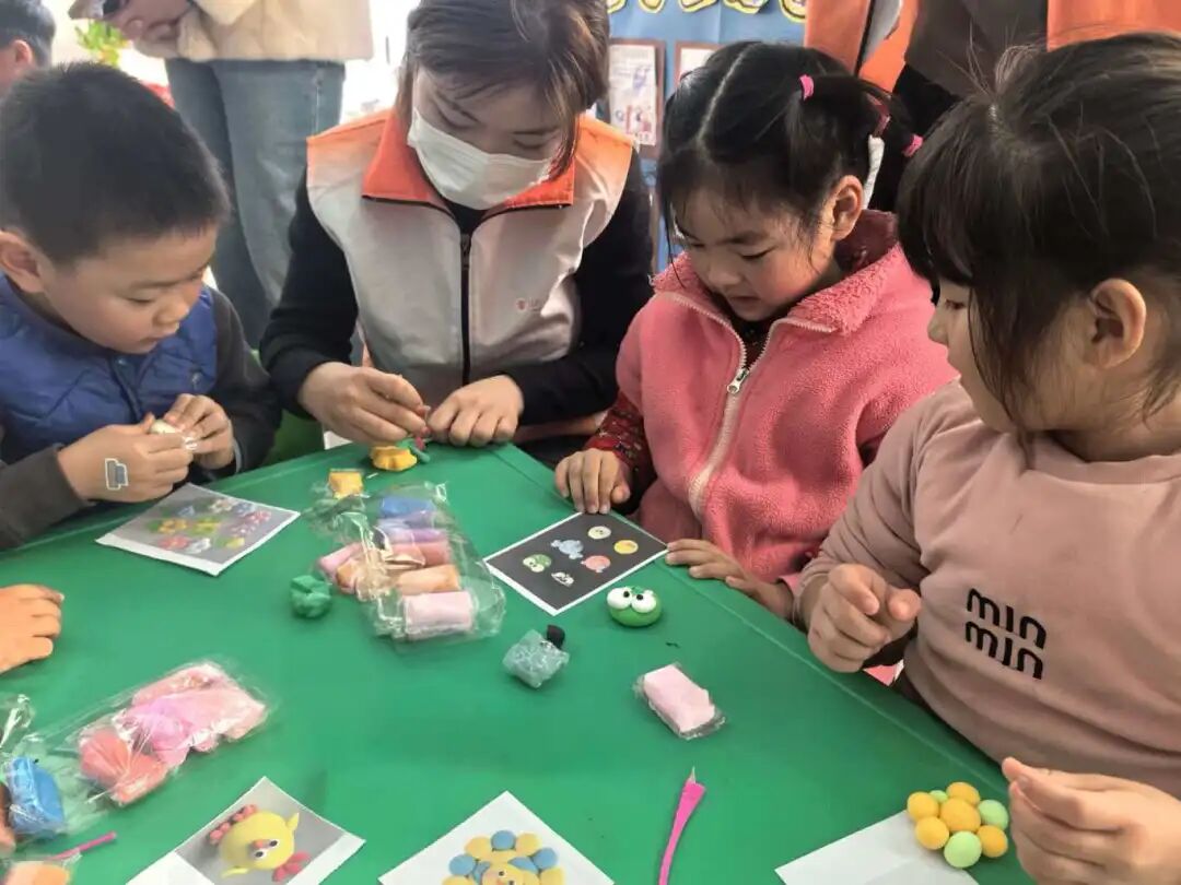 在初步学习冬至相关知识后,志愿者与小朋友们共同开展手工实践活动。在志愿者的指导下,孩子们亲手制作出精致的灯笼作品,每一盏灯笼既承载着祈福纳祥的美好愿景,又凝聚着阖家团圆的深厚文化寓意。泥人制作活动中,从选图到捏塑,孩子们充分发挥动手能力,捏制出造型逼真的泥人作品。