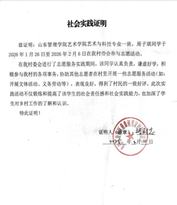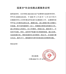为进一步深入学习习近平新时代中国特色社会主义思想,动员引领青年学子在投身基层建设、服务家乡发展中坚定信念、增长本领、作出贡献,努力发挥好大学生服务百姓、服务民生、服务国家发展中的重要作用,艺术学院组织开展了2026年寒假“返家乡”社会实践系列活动,鼓励艺苑学子发挥专业特长,在寒假实践中为家乡发展添砖加瓦。